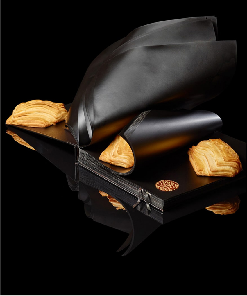 在制作过程中,这道泡芙甜品只经过一次折叠,从而让品尝者能够体验到其中的丰富层次。自然而然,这道甜品就宛如一本值得细细品味的好书,品尝者小心翼翼又心怀欣喜地将其一层层撕下,然后细细品尝。
