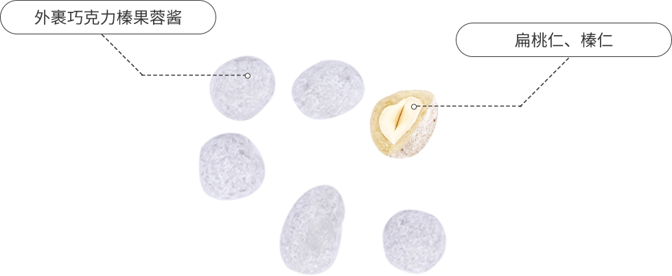 榛仁、扁桃仁、白砂糖、可可脂、全脂奶粉、可可豆、大豆磷脂、食用香精。