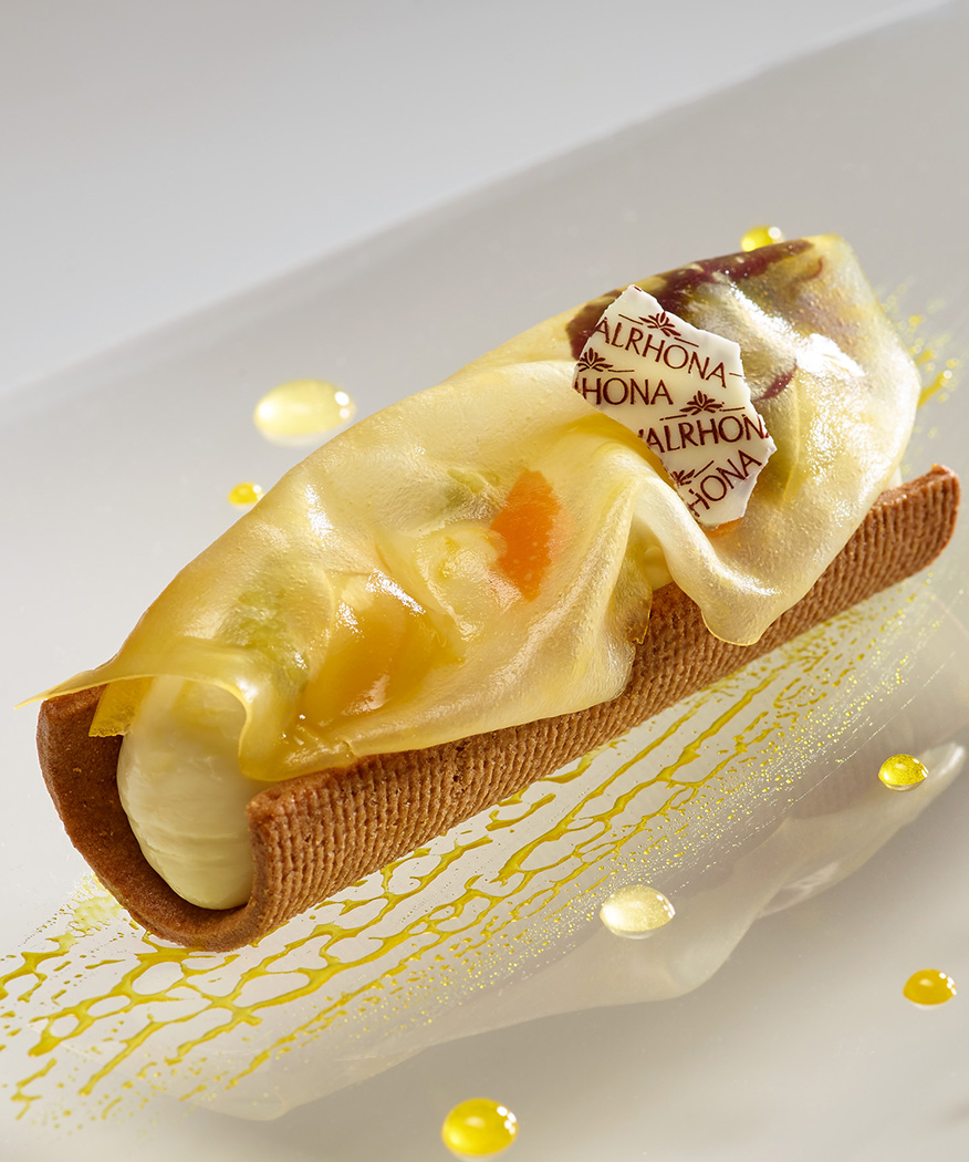 这款甜品用一片透明的米纸包裹,具有百香果糖浆的精妙调味。